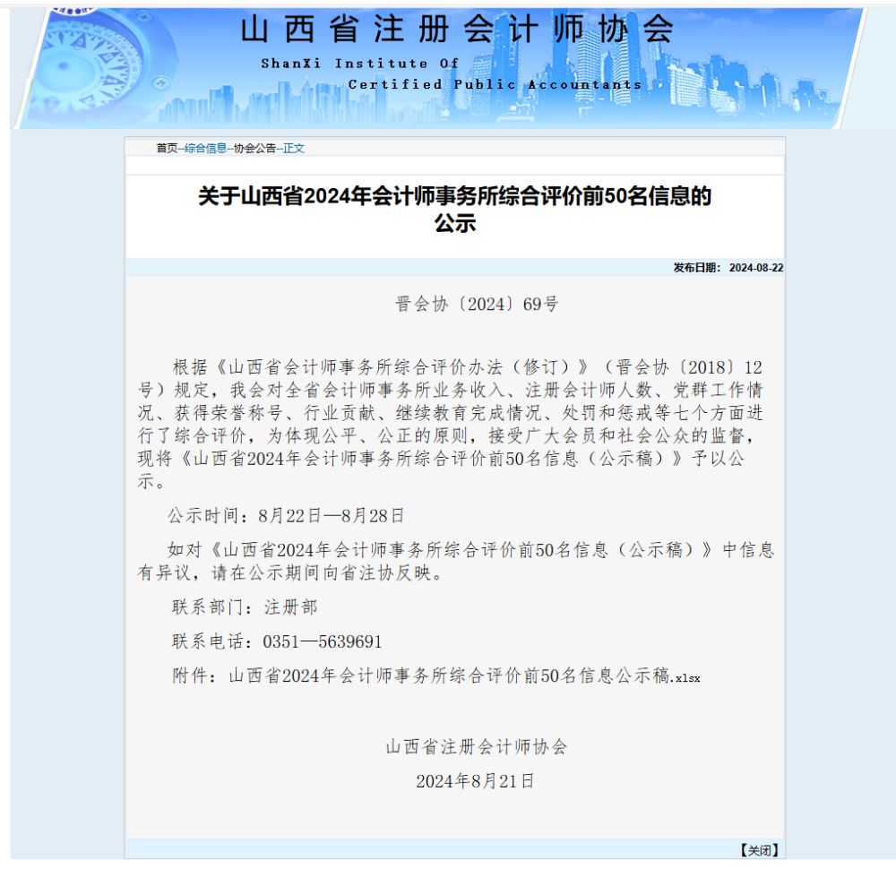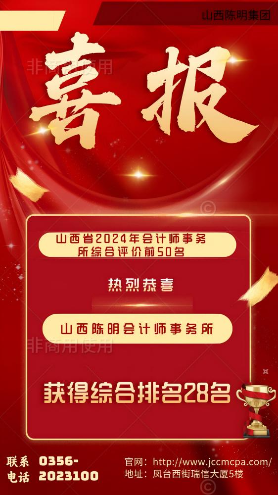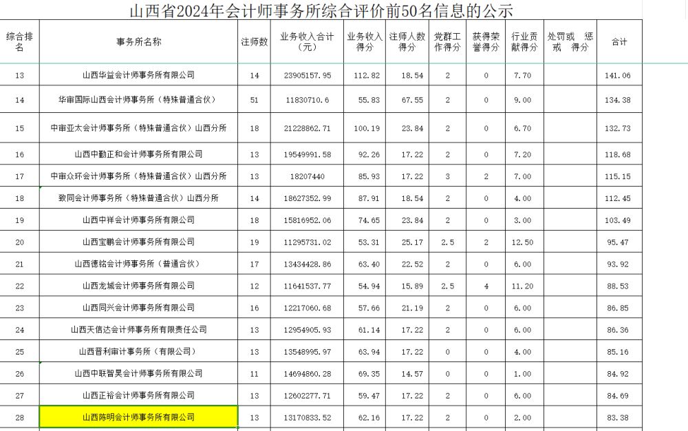 祝賀山西陳明會計師事務所有限公司獲山西省事務所綜合排名28名