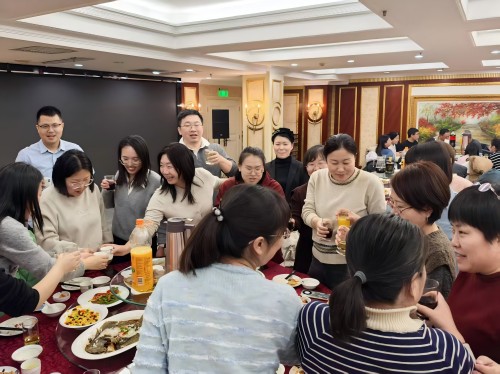 陳明人互相交談著,增進(jìn)了部門與部門之間,上級與下級之間的相互了解,增強(qiáng)了團(tuán)隊凝聚力,整個餐廳都彌漫著陳明集團(tuán)這個大家庭的暖意。整個聚餐聯(lián)歡在同事們的明七暗七的娛樂中落下了帷幕!